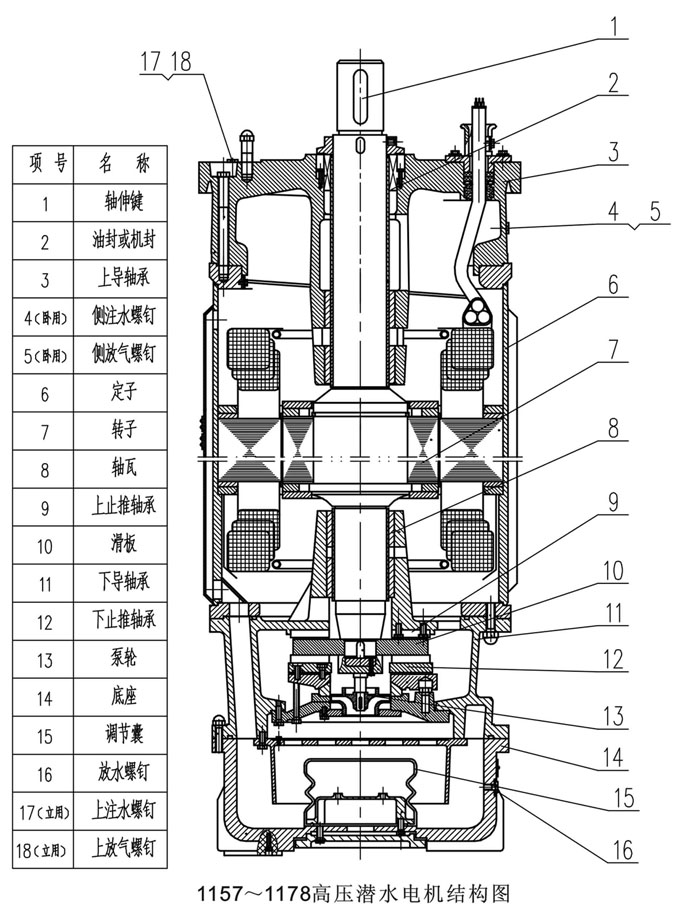 3、 電動(dòng)機(jī)下部裝有橡膠調(diào)節(jié)囊,其作用為當(dāng)電機(jī)內(nèi)部熱脹冷縮時(shí)及電機(jī)外部水位高低變化時(shí),用以平衡電機(jī)內(nèi)腔與水的壓力。